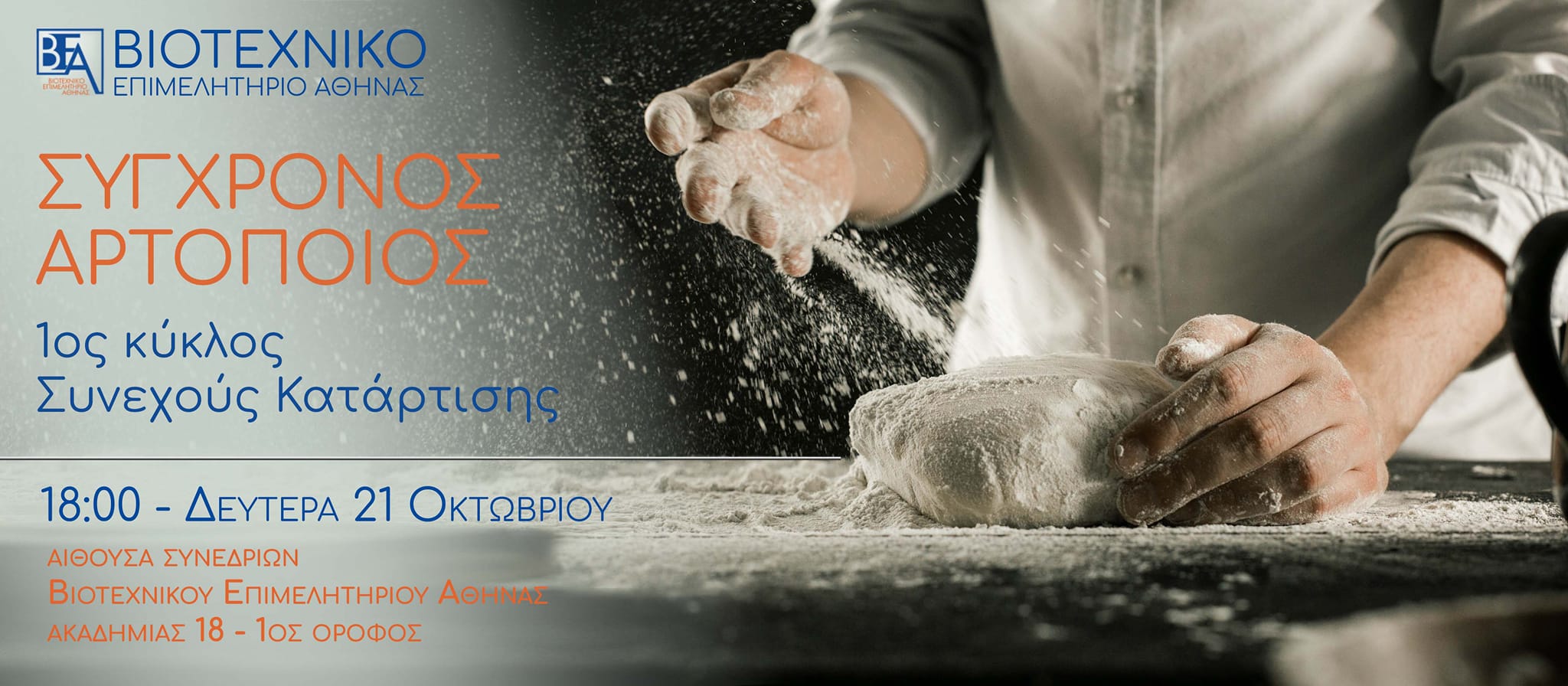 Το Βιοτεχνικό Επιμελητήριο της Αθήνας, ανοίγει νέες ευκαιρίες για τους Βιοτέχνες Αρτοποιούς, υποστηρίζοντας την επιχειρηματική προοπτική τους και σε προσκαλεί, στον 1ο Κύκλο συνεχούς κατάρτισης του κλάδου.